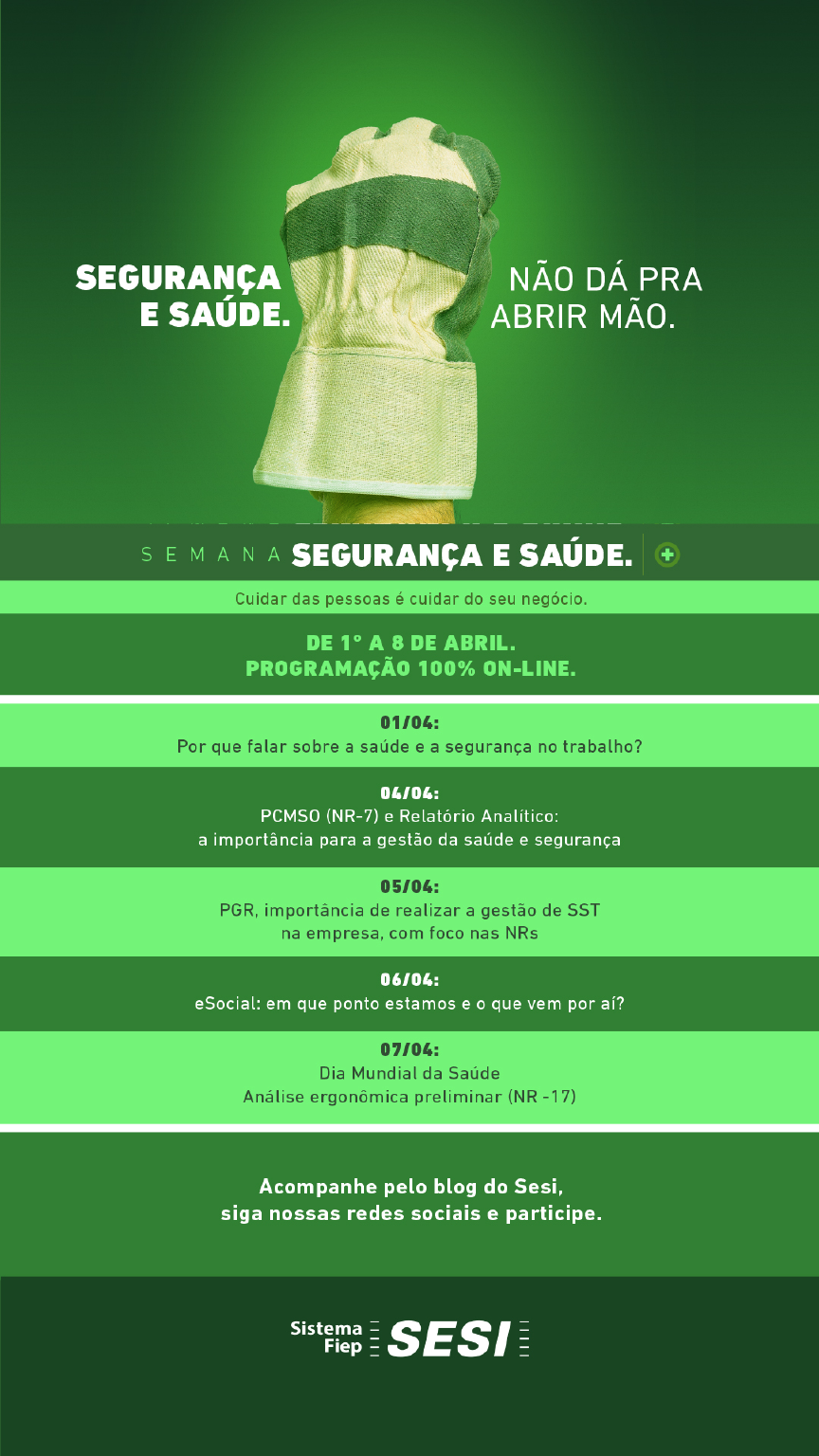“O mês traz a conscientização e busca promover o quanto as ações preventivas podem reduzir e até eliminar os acidentes e afastamentos no trabalho”, afirma Robson Alexandre Gravena, gerente executivo de Segurança e Saúde do Sistema Fiep. “Neste ano, com a vigência das novas Normas Regulamentadoras, ganha ainda mais força, já que muitas das mudanças são para uma análise de dados mais transparente e assertiva, visando a execução de ações preventivas”, completa.