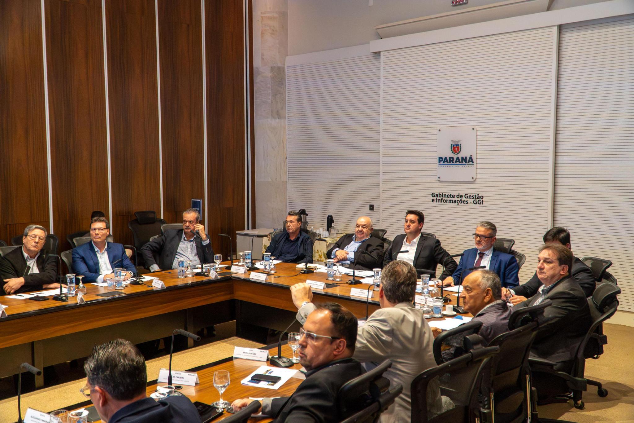 uma reunião com o governador Carlos Massa Ratinho Junior e integrantes de órgãos estaduais para tratar