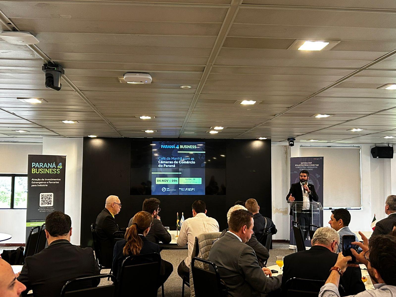 O Sistema Federação das Indústrias do Estado do Paraná (Sistema Fiep), por meio do Centro Internacional de Negócios (CIN-PR), promoveu no dia 4 de novembro o evento “Café da Manhã com as Câmaras de Comércio do Paraná”, um encontro estratégico que reuniu representantes de diversas nações e instituições com o objetivo de fortalecer conexões internacionais, fomentar parcerias bilaterais e impulsionar novos negócios e investimentos no Paraná.