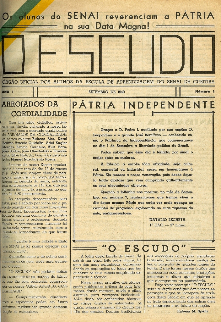 "O escudo é o nome do nosso jornal. É lido não só no Paraná, como em todo o Brasil, pois todas as Escolas do Senai, recebem-no. É interessante frizar o seguinte: