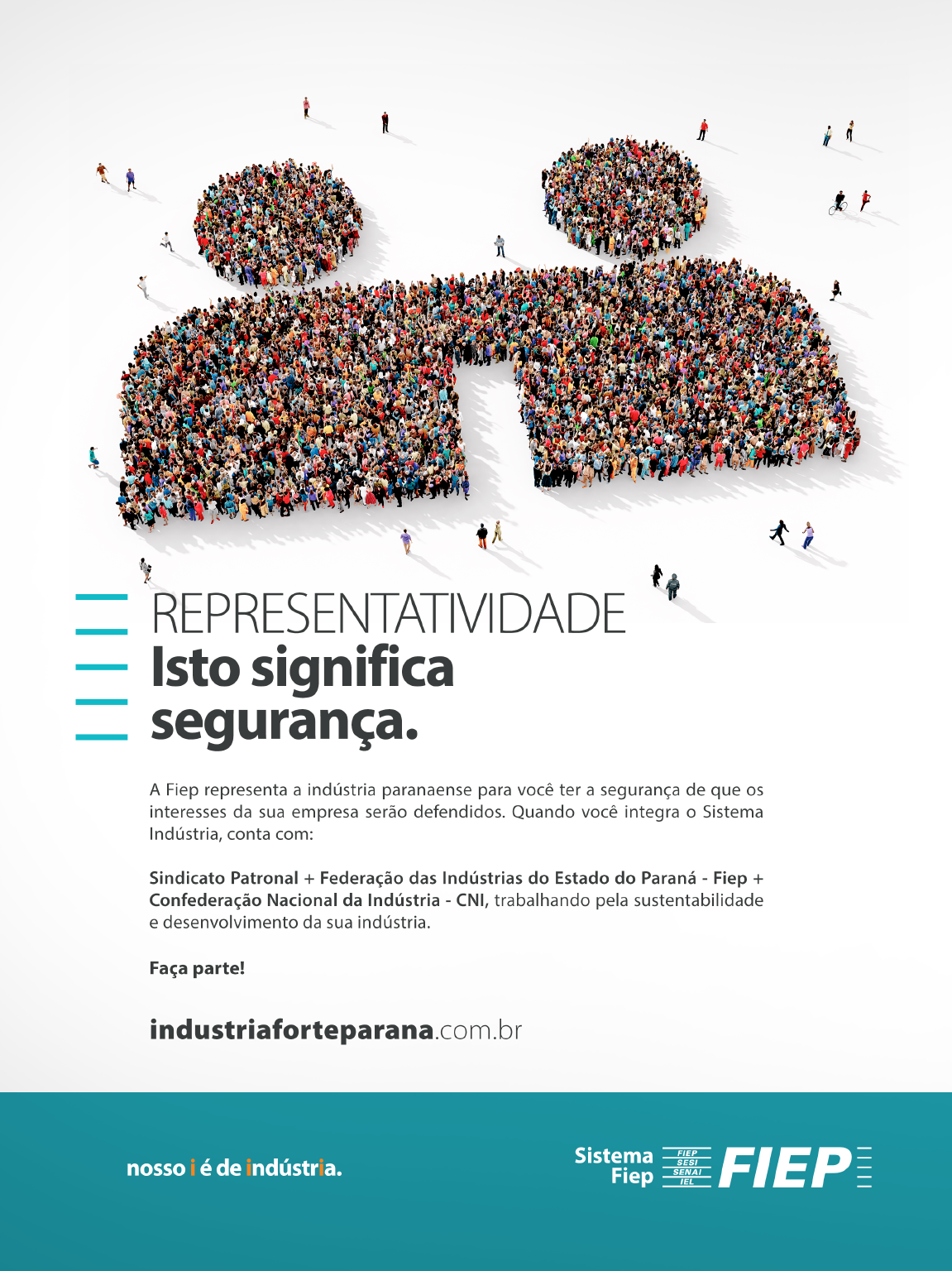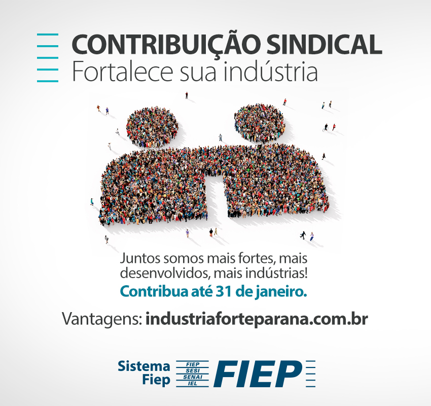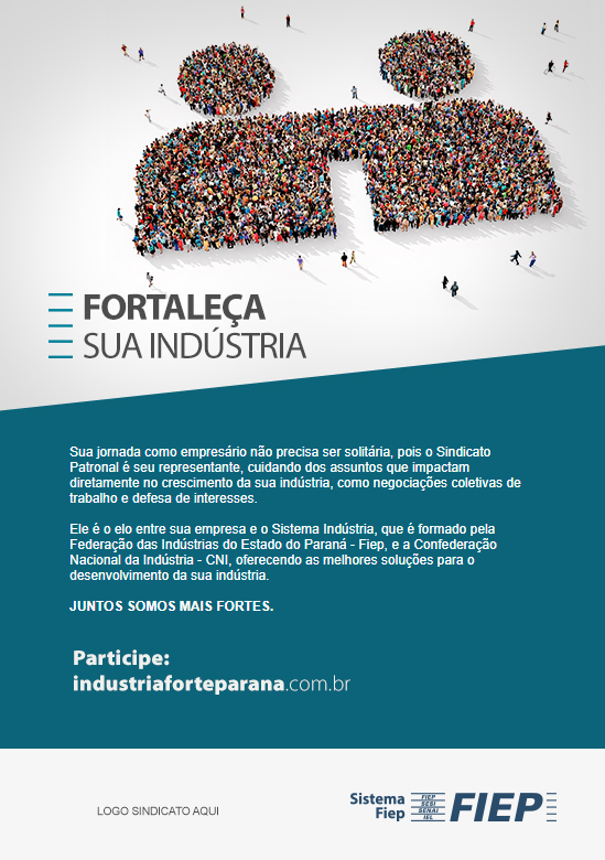 Faça parte do Sistema Indústria, formado pelo sindicato patronal, a Fiep e a CNI, porque juntos somos mais fortes, mais desenvolvidos, mais indústrias.