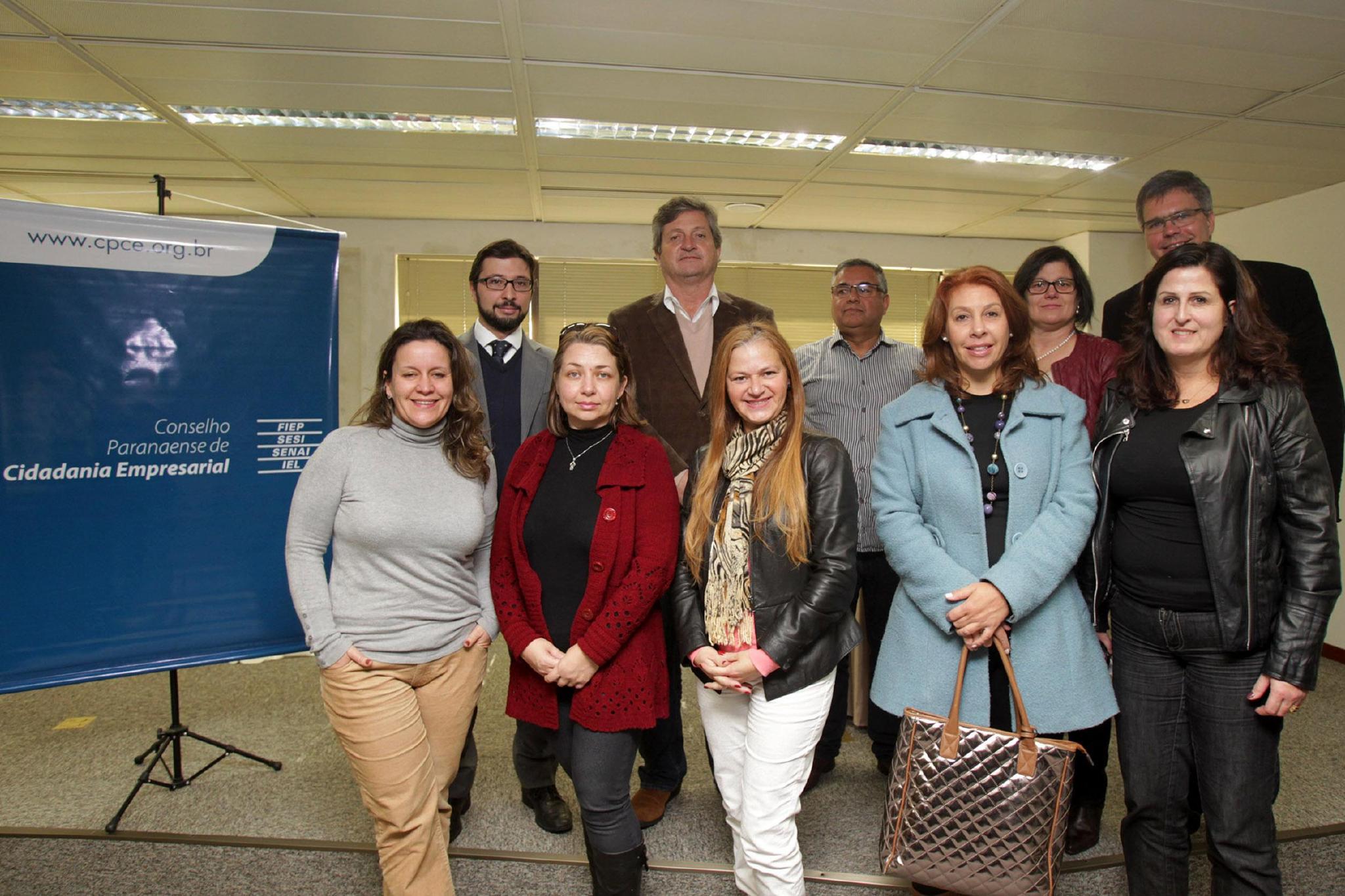 Os conselheiros e representantes de todos os núcleos de competência do Conselho Paranaense de Cidadania Empresarial (CPCE) reuniram-se na última quinta-feira (05) para conhecer e trabalhar os projetos que serão desenvolvidos no decorrer de 2014. Estiveram presentes no evento a diretora geral do CPCE, Mayra Dória Mattana, a gerente de Projetos e Articulações Estratégicas e Inovação Social do Sesi no Paraná, Maria Cristhina Rocha, representando o superintendente do SESI-PR, José Antonio Fares; a gerente de Responsabilidade Social do Sesi no Paraná, Sonia Beraldi de Magalhães; e a coordenadora executiva do CPCE, Rosane Fontoura.