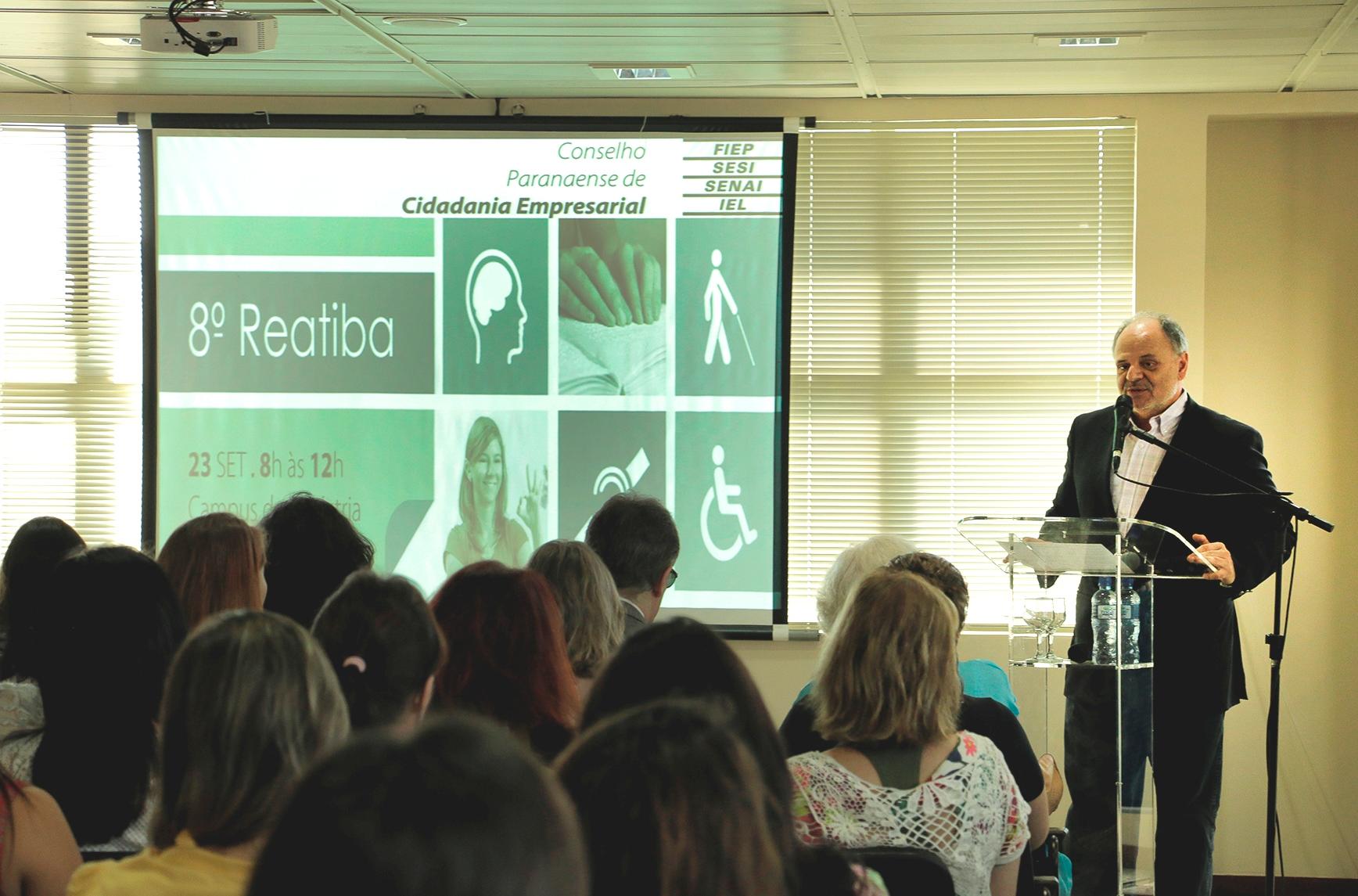 O Sesi Paraná reuniu, nesta quarta-feira (23), profissionais de RH e empresários para conversar sobre a inclusão de pessoas com deficiência no mercado de trabalho. O 8º Reatiba – Reabilitação, Tecnologia e Inclusão, realizado pelo Conselho Paranaense de Cidadania Empresarial (CPCE), conselho temático da Fiep, aconteceu na semana em que se comemora o Dia Nacional de Luta da Pessoa com Deficiência. “O Sesi já trabalha com esse tema pela diversidade nas indústrias e temos que sair desse evento com a responsabilidade de multiplicar isso para outros empresários”, destacou José Antonio Fares, superintendente do Sesi Paraná.