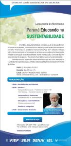No dia 2 de agosto acontecerá o lançamento do movimento "Paraná Educando na Sustentabilidade", no Cietep, em Curitiba. O Núcleo de Instituições Educacionais do Conselho Paranaense de Cidadania Empresarial (CPCE) percebeu a necessidade de ampliar as discussões sobre o tema e fortalecer ações voltadas à concepção da sustentabilidade focada na educação.