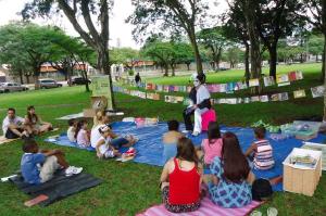 Durante a Feira do Livro, o grupo Leituras ao Vento promoveu contação de história, varal do livro, troca e doação de exemplares, entre outras atividades.