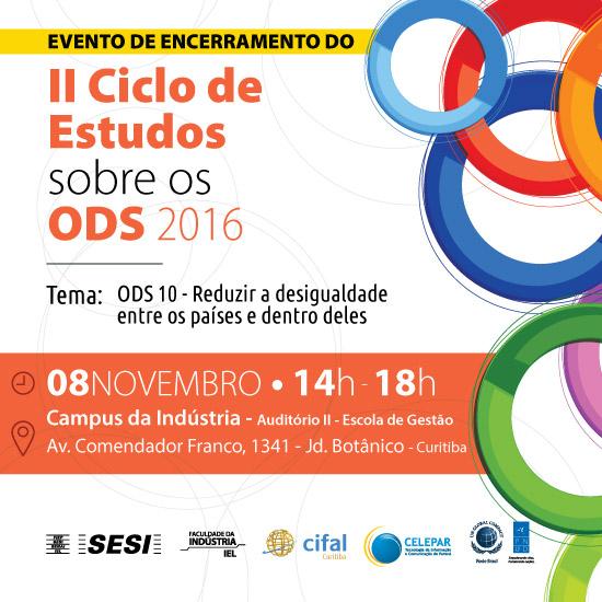 No dia 08 de novembro, ocorre no Campus da Indústria a Reunião do Núcleo Ods de Curitiba e Região Metropolitana, juntamento com o último Ciclo de Estudos do ano, que abordará a temática do ODS 10 - Reduzir a desigualdade entre os países e dentro deles. O evento acontecerá das 14:00 às 18:00.