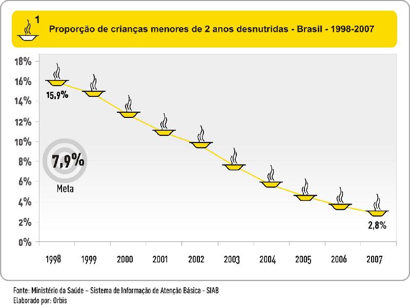 foi reduzido em 56% entre 2000 e 2007, passando de 12% em 2000 para 5% em 2007. A região Sul reduziu em 87% a proporção