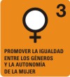| Eliminar la disparidad entre los géneros en la enseñanza primaria y secundaria hasta 2015. | Relación entre niños y niñas en la educación primaria, secundaria y superior. Relación entre mujeres y hombres alfabetizados en la edad de 15 a 24 años. Proporción de mujeres entre los empleados remunerados en el sector no agrícola. Proporción de mujeres ocupando mandatos en el parlamento nacional. |