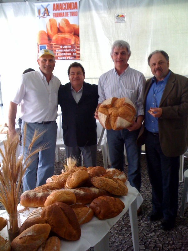 Nem mesmo a chuva atrapalhou as ações do Dia Mundial do Pão, realizadas sexta-feira (15), na Praça Rui Barbosa, em Curitiba, pelo Sindicato da Indústria de Panificação e Confeitaria do Paraná (SIPCEP). Foram distribuídos 11 mil pães em troca de livros, que agora serão doados para a comunidade da Vila Torres e para a biblioteca do Pequeno Cotolengo, instituição beneficente que atende pessoas com necessidades especiais de todas as idades. O Sesi levou para a praça dicas de como prevenir o câncer de útero e de mama, além de mostrar formas de se proteger da dengue. Também foram feitos exames oftalmológicos em uma unidade móvel instalada no local. Os diretores do Senai-PR, João Barreto Lopes, e do Sesi-PR, José Antonio Fares, prestigiaram o evento. Na foto, eles estão com o presidente do SIPCEP, Vilson Felipe Borgmann, e o diretor da entidade, Ricardo Brollo.