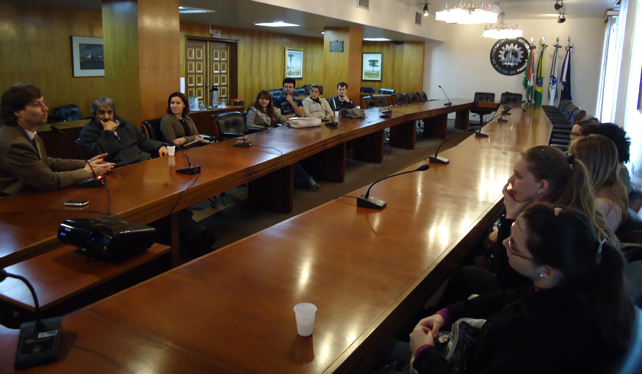 Na última sexta-feira (15) alunos do 6º período de Jornalismo da Universidade Positivo visitaram a Diretoria de Comunicação e Promoção do Sistema Fiep. O diretor da área, o jornalista Luiz Henrique Weber, conversou com os estudantes sobre a comunicação integrada e os trabalhos realizados. Durante o encontro, Weber salientou a importância do trabalho em equipe para a obtenção de resultados positivos e mostrou um vídeo sobre o funcionamento da diretoria de comunicação e promoção. Após a conversa, os alunos visitaram a área que fica localizada no 8º andar da Sede do Sistema Fiep (Av. Cândido de Abreu, 200) e conversaram com profissionais sobre o a rotina de trabalho na comunicação. Os alunos vieram acompanhados do professor Emerson Castro, que avaliou a visita como muito produtiva. "É bem importante esta oportunidade para os alunos observarem na prática como funciona o mercado de trabalho. Optamos por visitar a Fiep por ser uma das instituições que tem um trabalho de comunicação mais estruturado", disse.