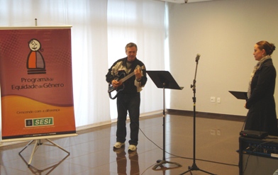 Para comemorar a conquista do Selo Pró-Equidade de Gênero pelo Sesi PR, a cantora Márcia Diniz, que participa de festivais de música do Sesi em âmbito nacional, fez uma apresentação com repertório de MPB no hall de entrada da sede, em Curitiba. A ação aconteceu na quinta-feira (16) e chamou a atenção dos colaboradores que passaram pelo local.