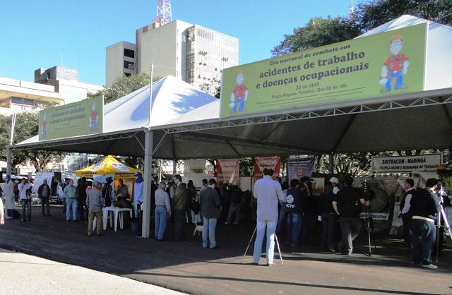 O Sesi Maringá esteve na quinta-feira (28), na Praça Raposo Tavares auxiliando as indústrias nas ações de prevenção aos acidentes de trabalho e doenças ocupacionais. A ação contou com uma unidade móvel de saúde em exposição e o auxílio de profissionais da área (engenheiro de segurança do trabalho, médico do trabalho e auxiliar de enfermagem) para apoio e realização de atividades (aferição de pressão) voltadas à orientação e prevenção de acidentes de trabalho e doenças ocupacionais. Além do Sesi Maringá e do organizador do evento, Sivamar, também apoiaram e participaram do evento: Prefeitura Municipal, Sinduscon, Acim, Ministério Público do Trabalho, Senac, Centrais Sindicais e Fetraconspar (Federação dos Trabalhadores na Indústria da Construção e do Mobiliário do Paraná).