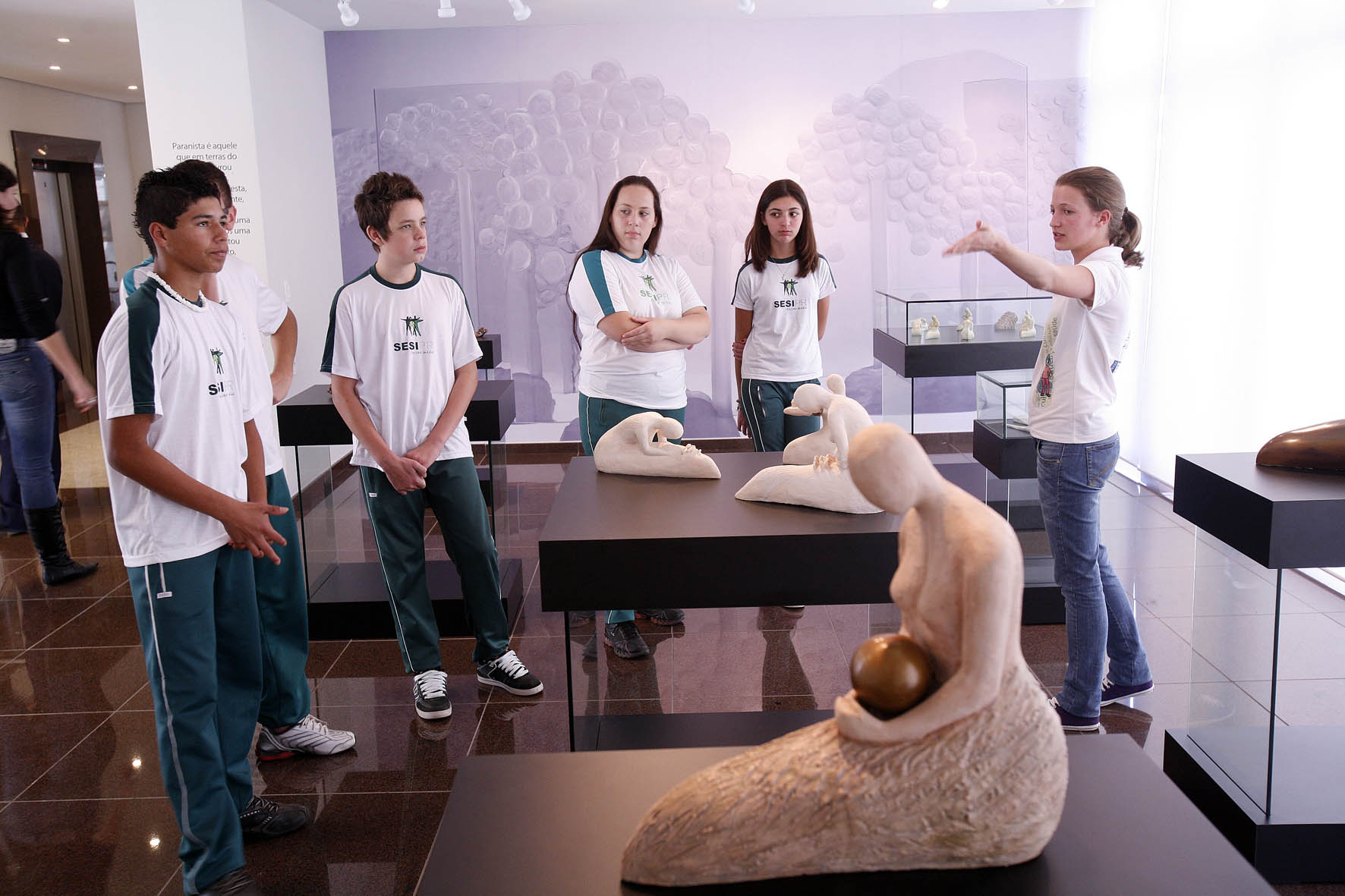 clique para ampliar Os estudantes conhecem as esculturas de Vera Lilia, que compõem a exposição