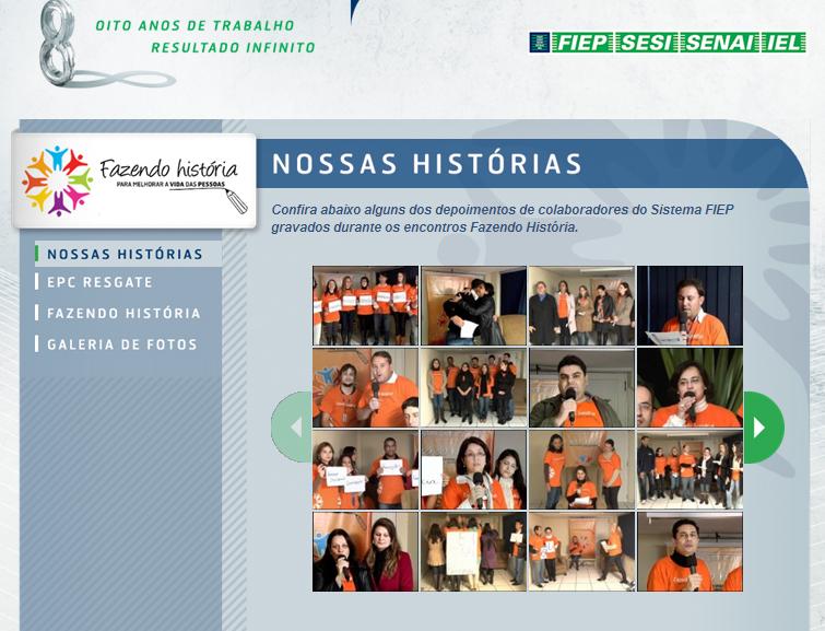 Na última quinta-feira (18), foi lançado o hotsite "Fazendo História Para Melhorar a Vida das Pessoas". A ferramenta especial registra toda a emoção do que foi vivenciado durante a série de encontros realizados com o presidente Rodrigo da Rocha Loures, no Cietep e nas regionais. Por meio do hotsite, os colaboradores poderão conferir as fotos e os vídeos dos melhores momentos que aconteceram durante esses eventos.