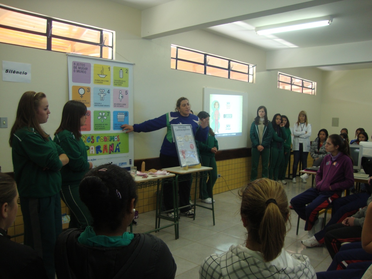 No dia 30 de março, alunas do projeto Sesi Amiga do Colégio Sesi de Palmas, desenvolveram atividades em prol do Objetivo do Milênio 3 (Igualdade entre os Sexos e Valorização da Mulher) e 6 (Prevenir a AIDS, Malária e outras doenças). Cerca de 50 alunas do Colégio Estadual Santa Catarina do município de Coronel Domingos Soares participaram da ação, que contou com palestras de sensibilização sobre prevenção de doenças sexualmente transmissíveis, AIDS e gravidez precoce.