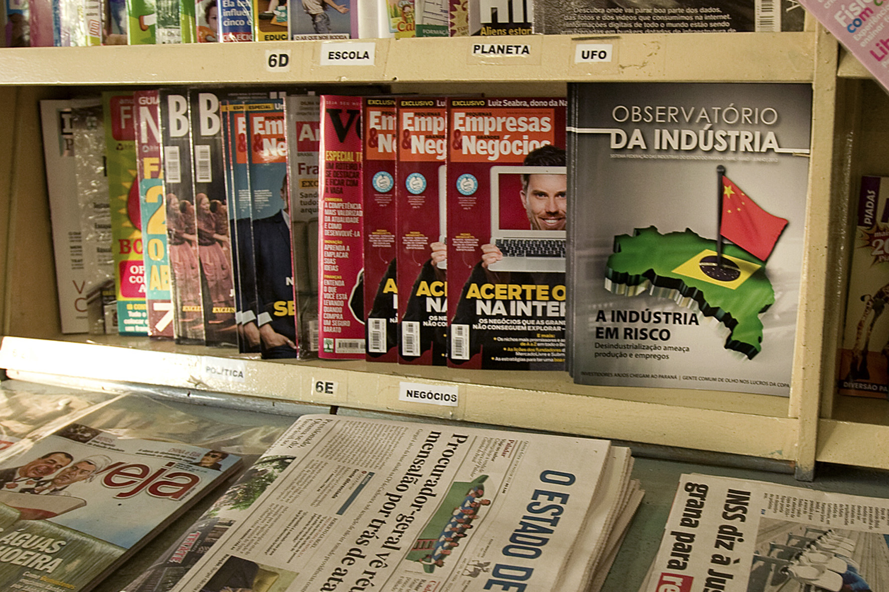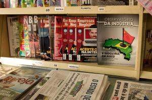 clique para ampliar clique para ampliarA revista Observatório da Indústria foi colocada junto com publicações do mesmo segmento. A distribuição das publicações é gratuita (Foto: Gelson Bampi)