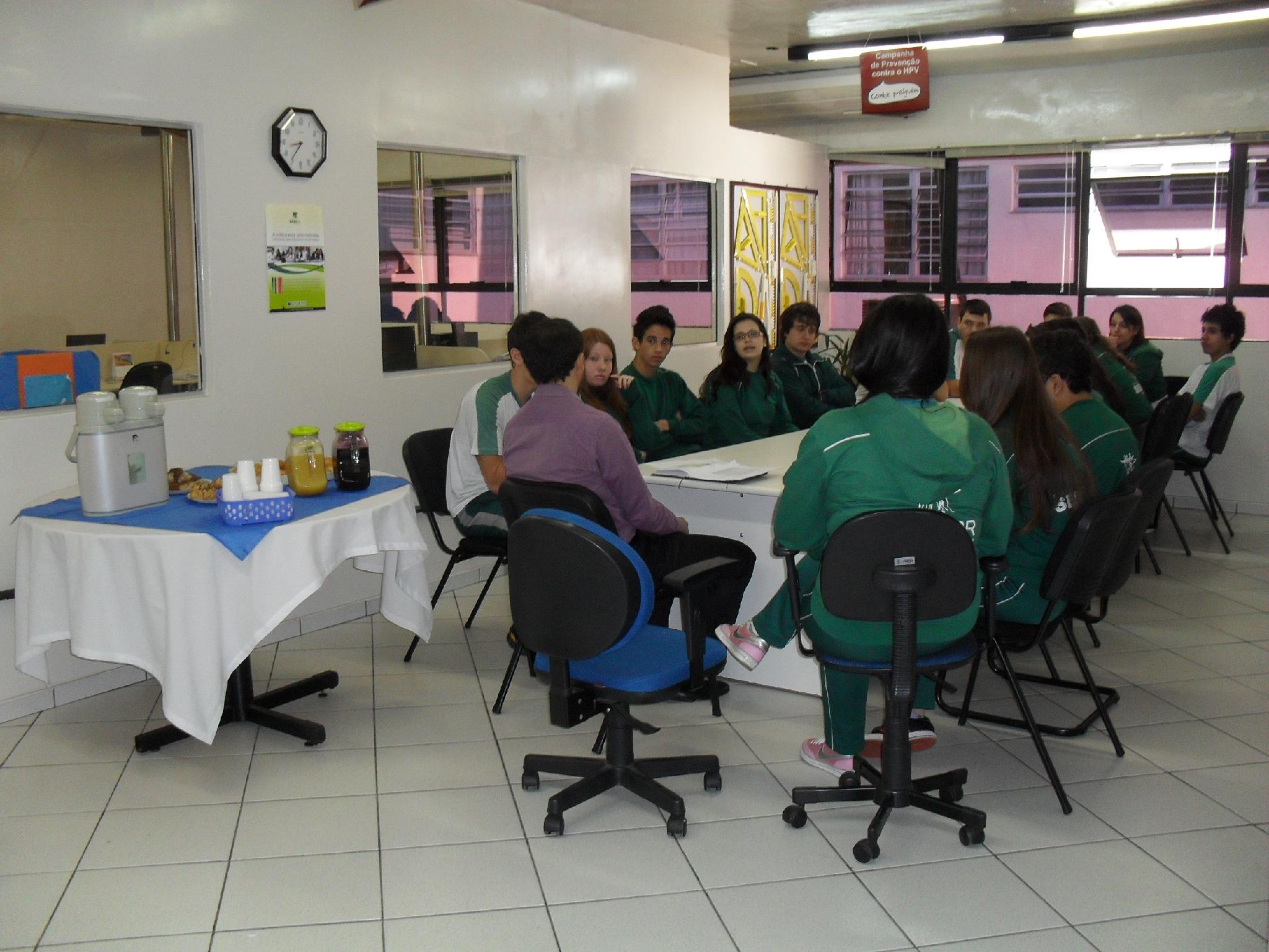 Na última quinta-feira, 23 de agosto, dois alunos representantes de cada Oficina de Aprendizagem do Colégio Sesi em Pato Branco participaram do "Café da manhã com o diretor", que é um momento de diálogo com o coordenador de educação, Julio Lucchesi. O encontro é resultado de um acordo estabelecido durante a Assembleia do Regulamento, realizada em março de 2012, e tem como objetivo ouvir os estudantes e dialogar sobre o andamento das atividades realizadas no Colégio Sesi em Pato Branco. O café da manhã acontece uma vez por bimestre.