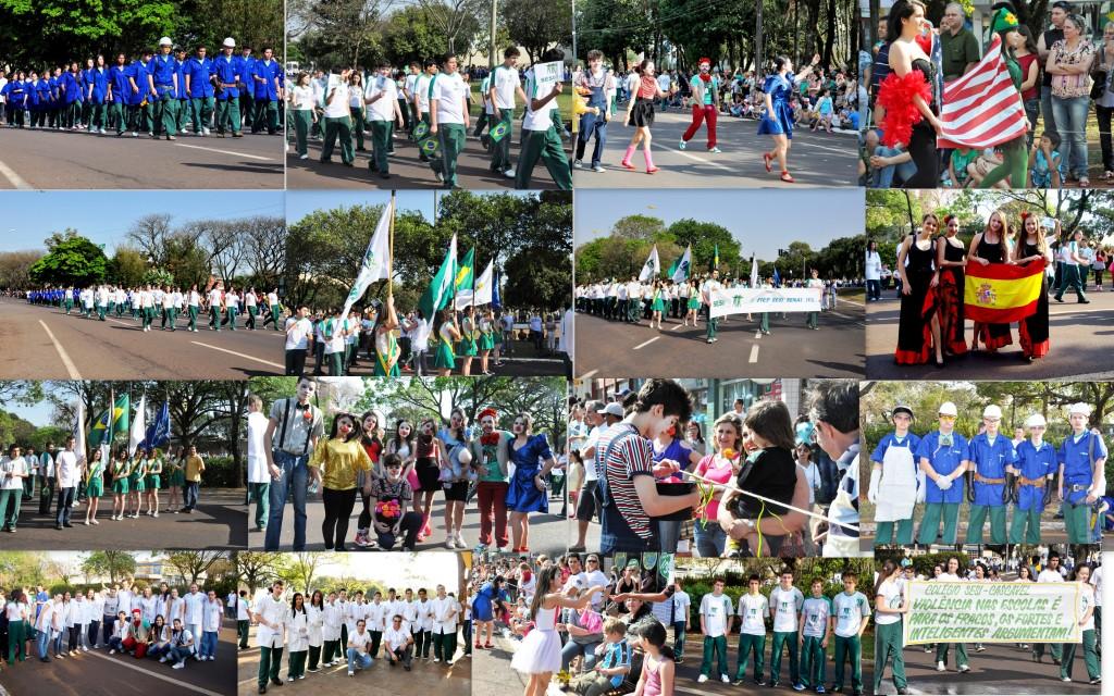 Alunos do Colégio Sesi em Cascavel participaram do desfile de Sete de Setembro. Aproximadamente 200 alunos desfilaram, além dos professores, o gerente da Unidade Hugo A. Ceron, o coordenador de Eeducação, Dilson Ledur, e os pais dos alunos, que estiveram presente para prestigiar os filhos e o colégio. Foram sete pelotões, montados da seguinte maneira: alunos com os uniformes do colégio, o grupo de teatro, alunas representando a Espanha e os Estados Unidos, o esporte, os alunos da oficina "Aprender sem Medo", além dos alunos de química, usando jalecos e óculos e carregando materiais de laboratórios. Para encerrar os alunos EBEP (ensino médio e técnico) também desfilaram, representando o Senai. Eles usaram jalecos e equipamentos de segurança.
