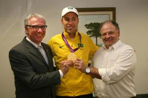 O presidente da Fiep, Edson Campagnolo, recebeu nesta segunda-feira (17) o paraatleta Emerson de Carvalho. Colaborador do Sesi, Emerson conquistou a medalha de ouro no Futebol de 5 para portadores de deficiência visual na Paralimpíada de Londres, encerrada no último dia 9. "A vitória do Emerson é a nossa vitória. Nos sentimos no pódio junto com ele quando subiu para receber a medalha", afirmou Campagnolo. "Acima de tudo, ele é um bom profissional dentro do Sistema Fiep e queremos que continue desenvolvendo seu papel. Continuaremos incentivando a ele e, se tivermos outros atletas com esse mesmo perfil, também vamos apoiar para que continuem dando esse belíssimo exemplo", acrescentou.