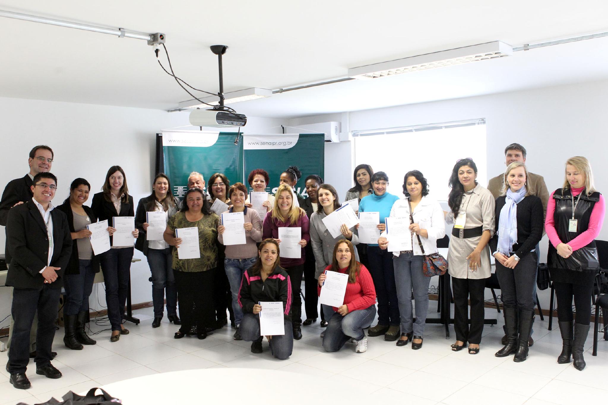 O Senai cerificou nesta terça-feira (16), em Curitiba, a primeira turma do curso de auxiliar de confecção industrial realizado no Expresso Senai, unidade móvel de educação profissional da entidade. O Expresso Senai é um ônibus biarticulado doado ao Senai pela prefeitura de Curitiba e adaptado com sala de aula e oficina para levar a capacitação a comunidades onde o Senai não possui unidade física. Para este primeiro curso, o Expresso Senai esteve estacionado na Escola Municipal Professora Maria Augusta Jouve, no Boqueirão.