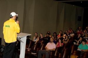 O medalhista paraolímpico Emerson de Carvalho leva sua mensagem de otimismo e de superação para alunos do Colégio Sesi. Na terça-feira (30) ele participou da reunião bimestral com os pais dos alunos da unidade Portão, em Curitiba. Nesta segunda-feira (5) o encontro foi com os alunos do Quatro Barras. Colaborador do Sesi, Emerson é o único paranaense na seleção brasileira de futebol de 5, que conquistou o ouro na Paralimpíada de Londres. Ele é cego desde criança e nas conversas com os jovens fala sobre a sua trajetória de vida, sobre a importância do esporte para conseguir a superação, sobre desafios e força de vontade. Ele perdeu a visão após um acidente de carro. Foi o padrasto quem o iniciou no esporte. Com talento e disciplina, chegou a seleção brasileira. "As barreiras existem para serem superadas. Não podemos desistir já na primeira queda. Tudo é possível, desde que você se dedique e se esforce", afirma Emerson.