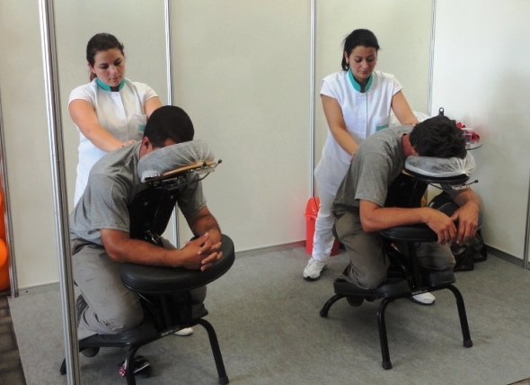 clique para ampliar clique para ampliarEntre as atividades ofertadas, o Sesi Portão realizou Quick Massagem para ajudar no relaxamento dos colaboradores (Foto: Divulgação)