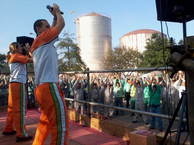 clique para ampliar clique para ampliarO Sesi realizou diversas atividades na Sipat, entre elas uma ginástica diferente e animada (Foto: Divulgação)