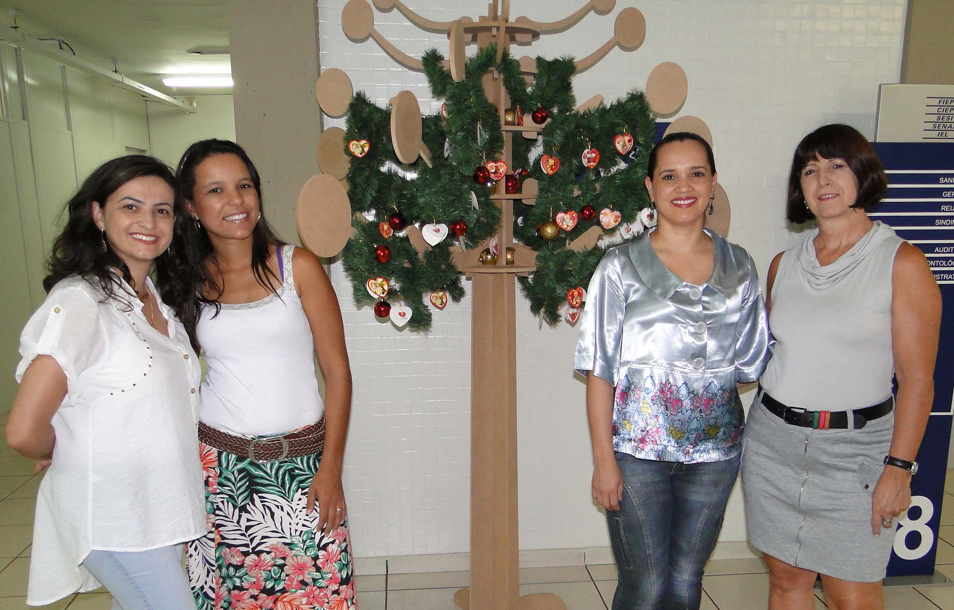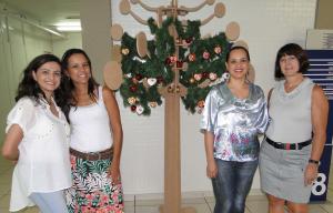 Na foto as colaboradoras Elcia Valentini, Andrea Almeida, Daiane Coelho e Tania Regina Buzo, que ajudaram na decoração da unidade e na montagem da árvore.