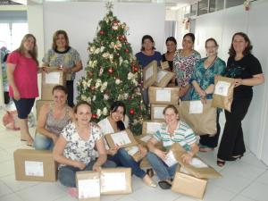 clique para ampliar clique para ampliarColaboradores de São José dos Pinhais seguram os presentes, que serão encaminhados para as crianças carentes (Foto: Divulgação)