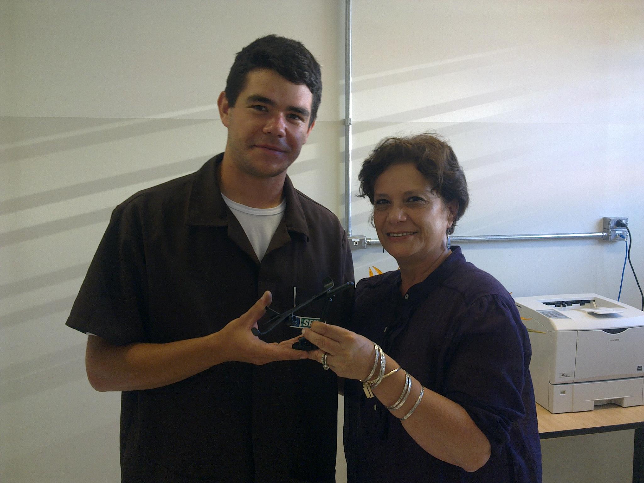 O aluno do Senai no Técnico em Eletromecânica e professor colaborador no curso de Engenharia de Materiais da Universidade Estadual de Ponta Grossa (UEPG) , Lucas Vinicius Ingenchki, entregou no dia 08 de dezembro para a gerente da unidade do Sesi e Senai em Ponta Grossa, Denise Beninca De Paula, uma miniatura de um avião.