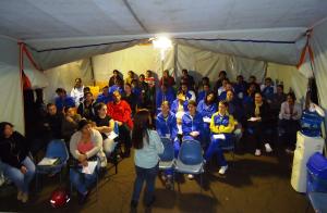 As famílias alojadas no pavilhão do bairro Sagrada Família,que foi mais atingido. Os alimentos foram arrecadados durantes os dois espetáculos do circuito cultural do Sesi ( Quarteto Iguaçu e Os Fabulosos) e uma apresentação de MPB da UFPR, promovida pela equipe de cultura de Dois Vizinhos.