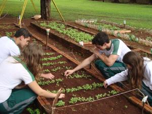 Alunos do Colégio Sesi em Marechal Cândido Rondon, que fazem parte da  oficina AGROTEC, realizaram uma atividade de plantio na horta. Eles foram orientados pela professora Adriana Franzmann.