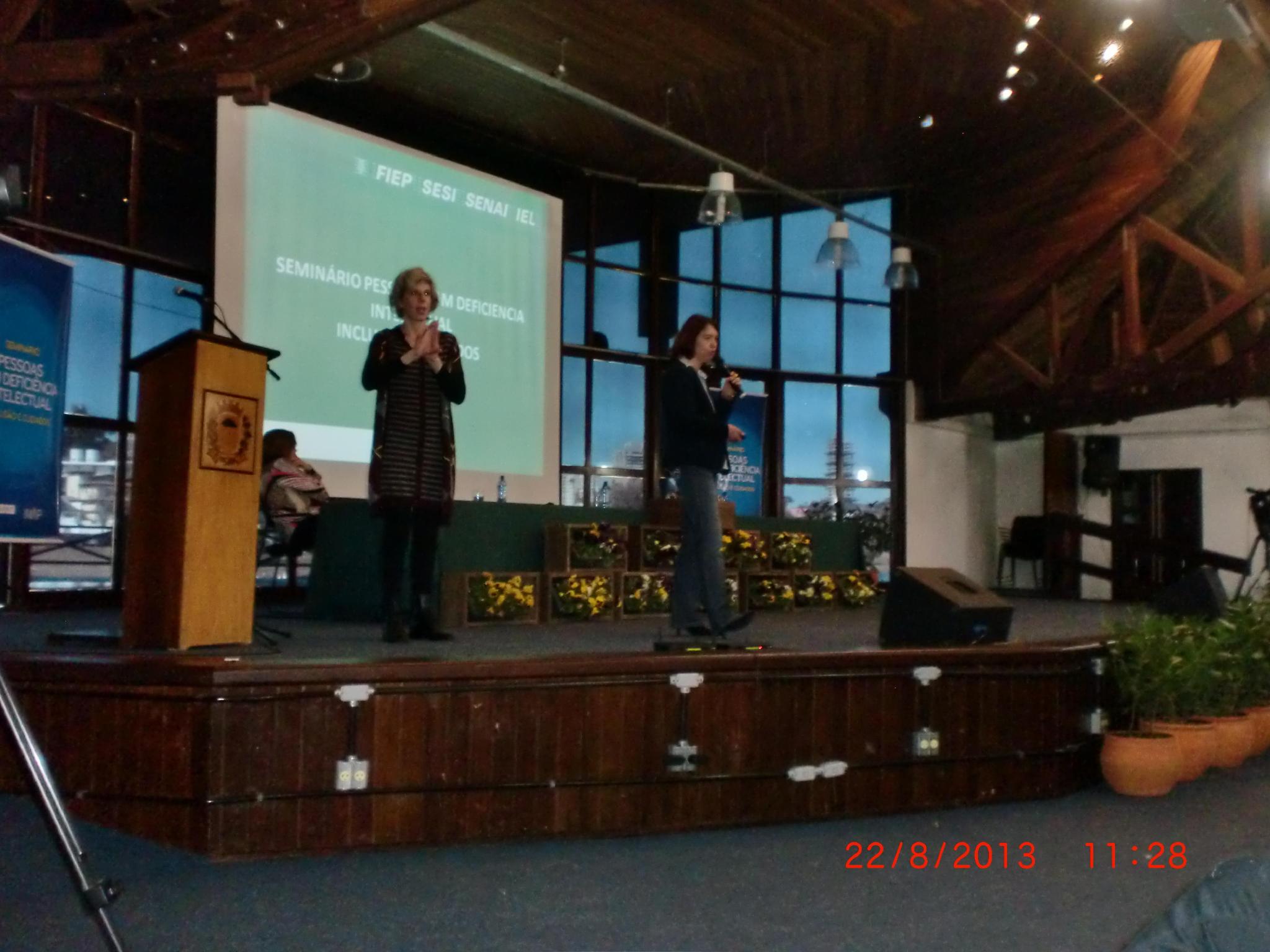 O programa "Aprendendo com a Diversidade", do Sistema Fiep, foi apresentado no dia 22 de agosto no Seminário Pessoas com Deficiência Intelectual, Inclusão e Cuidados, que aconteceu em Curitiba. O evento foi promovido pela Secretaria Especial dos Direitos da Pessoa com Deficiência da Prefeitura Municipal. A experiência do programa foi apresentada pela colaboradora Olivia do Rocio de Oliveira e pelo colaborador Giovanni Calderaro, que faz parte da iniciativa. A mãe de Giovanni, Mara Calderado também participou do evento, contando sua experiência com o filho.