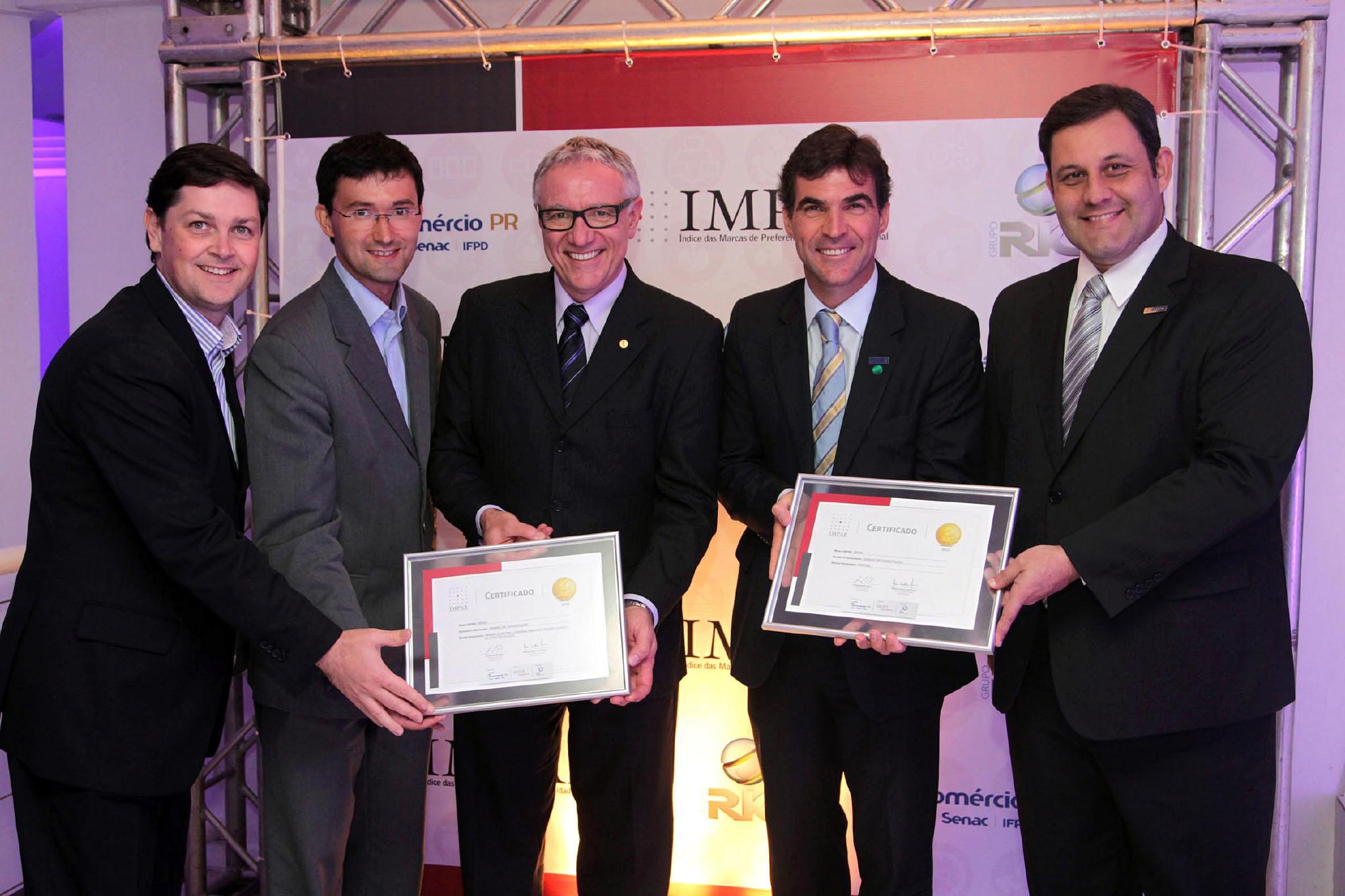 Pelo quinto ano consecutivo, o Senai no Paraná conquistou o Prêmio IMPAR (Índice das Marcas de Preferência e Afinidade Regional) como a marca mais lembrada no Estado, na categoria “Ensino de Capacitação Profissional”. Na mesma categoria, o Sesi no Paraná ficou na terceira colocação geral. O prêmio, realizado pelo Grupo RIC em parceria com o IBOPE Inteligência, avaliou as marcas preferidas dos paranaenses em cerca de 50 categorias de produtos e serviços em diferentes regiões do Estado. A pesquisa apontou que 41% dos consumidores paranaenses indicam o Senai como a principal referência do segmento, enquanto outros 7,62% apontam o Sesi. A premiação da edição de 2013 foi realizada na noite dessa segunda-feira (04).