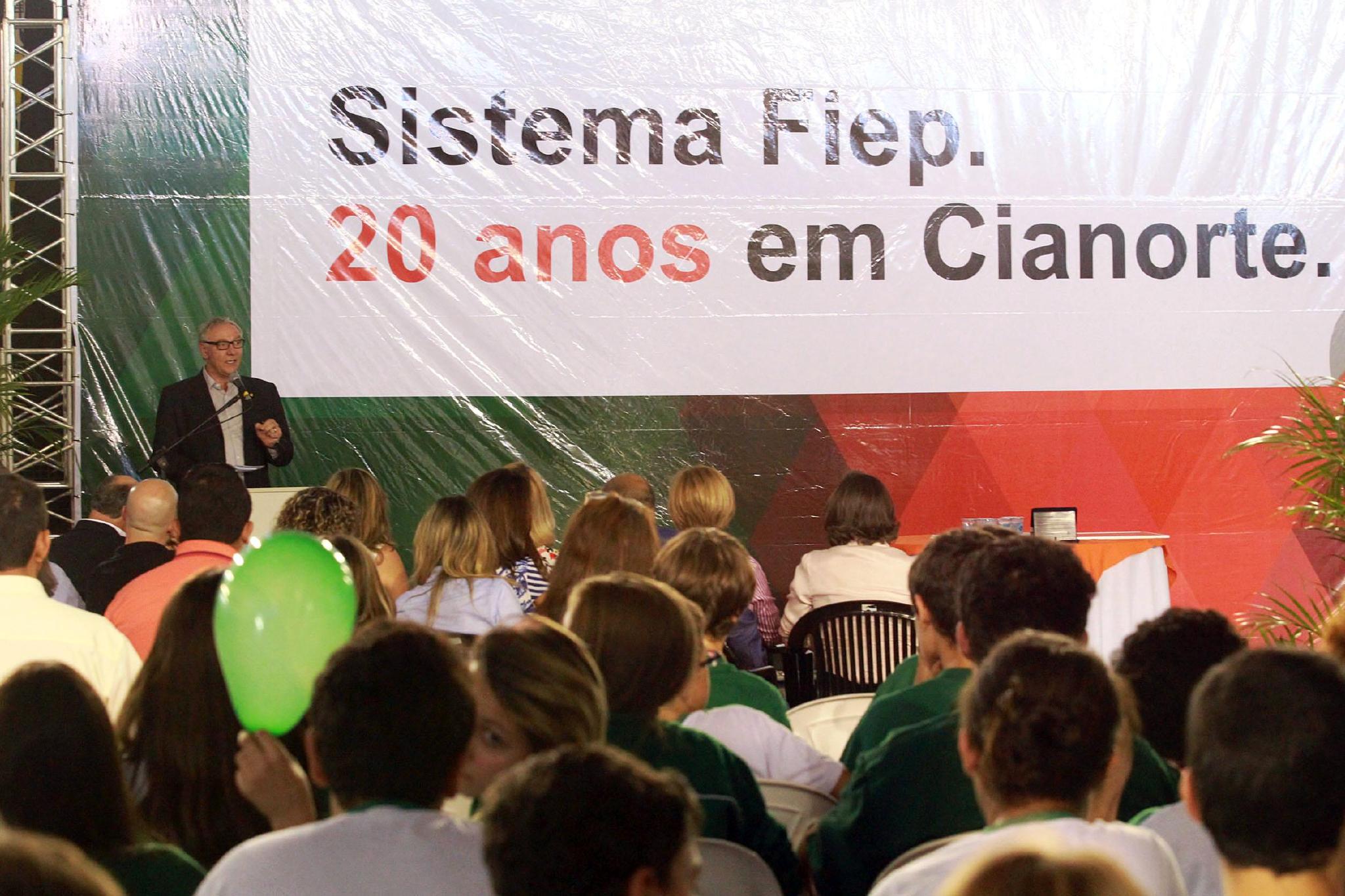 O Sistema Fiep comemorou, na última quarta-feira (3), os 20 anos de sua atuação em Cianorte, no Noroeste. A data foi marcada por uma solenidade que teve a participação do presidente Edson Campagnolo, e em que foram homenageadas lideranças empresariais e políticas que contribuíram com a história da entidade no município. Ainda em Cianorte, Campagnolo visitou duas empresas: a indústria de confecção Beeight e o abatedouro de frangos Avenorte.
