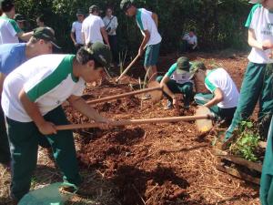 A primeira etapa foi fazer o plantio das mudas no terreno do colégio para a realização de uma horta escolar que pudesse ajudar na merenda dos alunos e da comunidade. Com a parceria do Sicredi, o apoio do Colégio Zizo e da Secretaria do Meio Ambiente de Foz do Iguaçu, nossos alunos, juntamente com os professores, plantaram, aprenderam sobre cooperação, união e trabalho social.