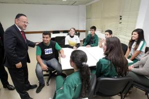 ampliarMinistro conversou com alunos do Colégio Sesi Internacional (Foto: Mauro Frasson)