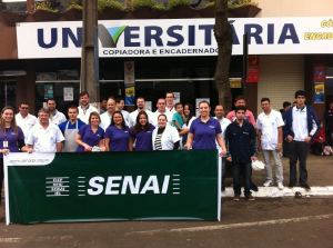 clique para ampliar>clique para ampliarColaboradores e alunos do Senai levaram faixas e vestiram camisetas da instituição (Foto: Divulgação)