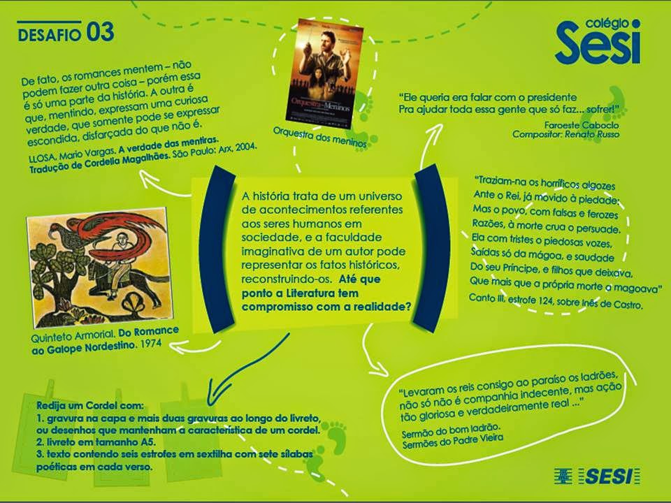 Desafios: No primeiro desafio, os alunos debateram sobre as obras “O Cortiço”, de Aluísio Azevedo, e “Vidas Secas”, de Graciliano Ramos, focando na temática da condição humana. Já no segundo, as obras lidas foram “O Alienista”, de Machado de Assis”, e o “Cemitério dos Vivos”, de Lima Barreto, focando na temática loucura. O terceiro desafio trouxe as obras “Boca do Inferno”, de Ana Miranda, e “Obras Poéticas”, de Gregório de Matos, focando na temática da História e Ficção.