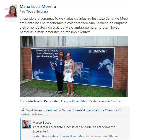 ampliarA colaboradora Maria Lucia Moreira, do Senai na CIC,  já está usando o Yammer