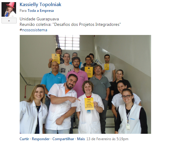 Tem bastante gente já usando o Yammer e contando o que está fazendo em todas as nossas unidades espalhadas pelo Paraná e até quem está fora do Brasil viajando a trabalho.