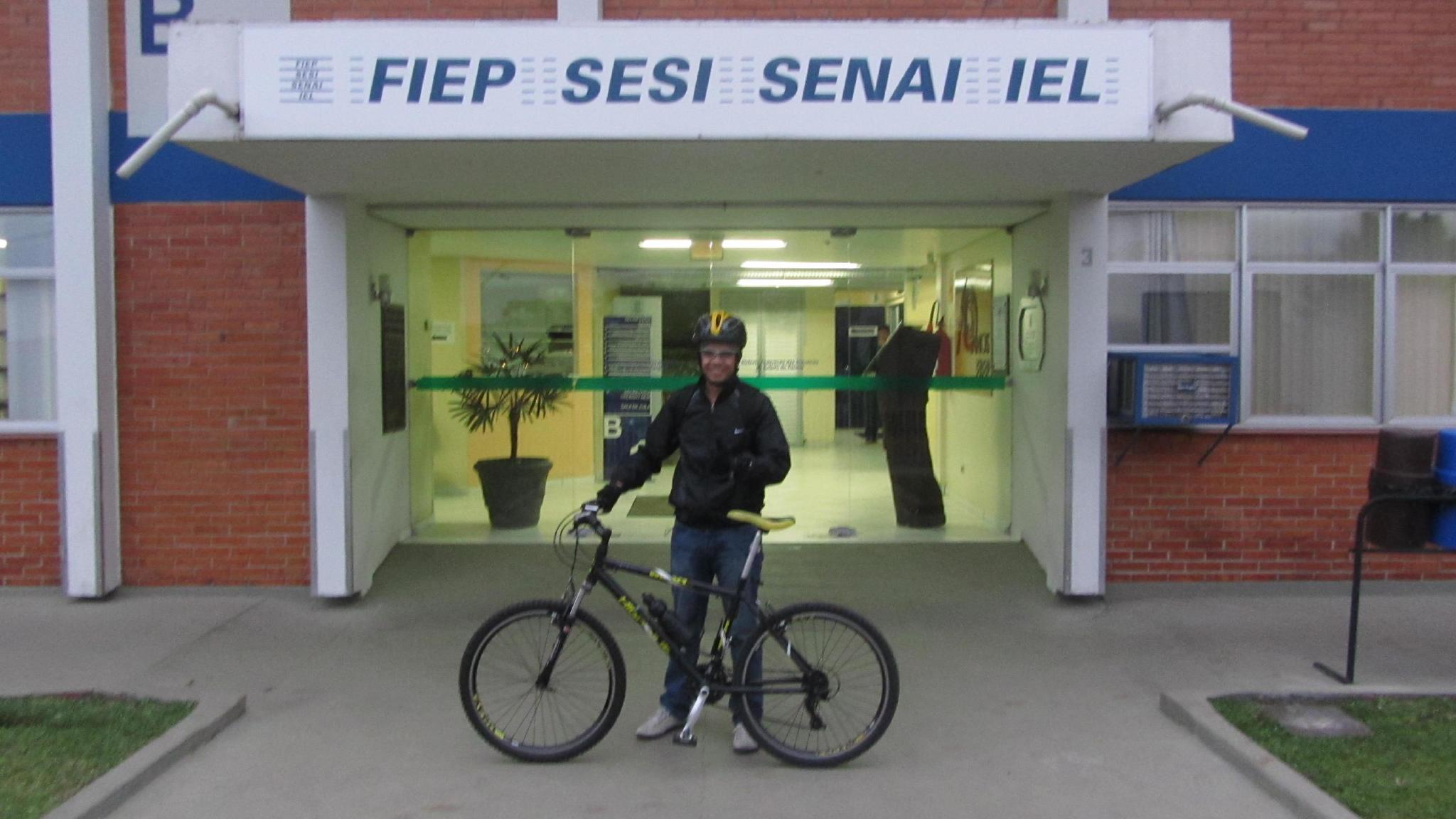clique para ampliarclique para ampliarEduardo Teixeira, do Sistema Fiep em Irati, chegando de bike no trabalho (Foto: Divulgação)