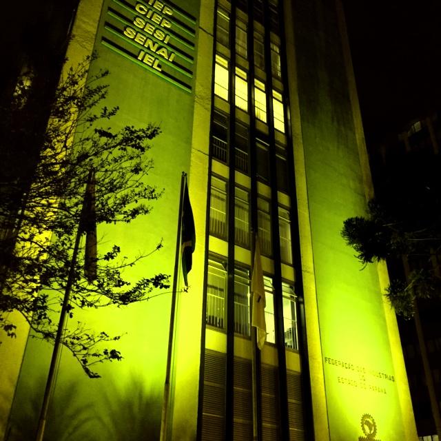 Por esse motivo, a partir de agora você receberá informações sobre o tema e o edifício Sede e o Campus da Indústria já estão iluminados com a cor amarela.