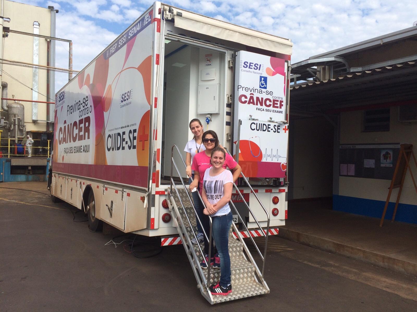 Mas o nosso trabalho relacionado ao câncer não se estende somente ao mês de Outubro. Por meio do eixo de Prevenção ao Câncer do programa Cuide-se+ do Sesi, nossas duas unidades móveis percorrem o Estado atendendo centenas de mulheres no diagnóstico da doença. Desde 2014, ano que o eixo iniciou suas atividades, já atendemos 5.821 trabalhadoras. Somente este ano foram 3.203!