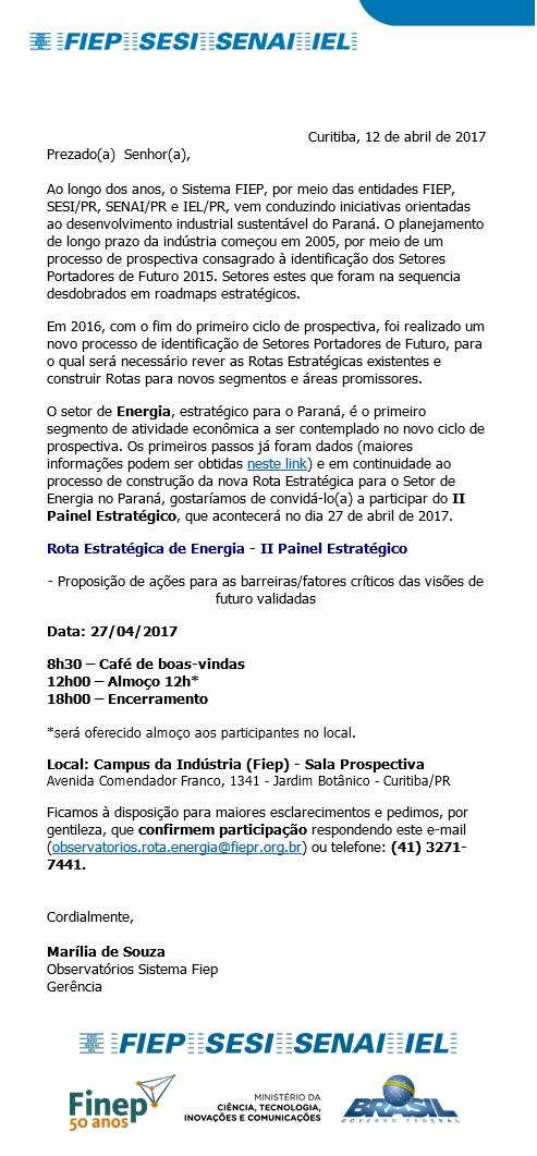 Confira abaixo o convite para o II Painel Estratégico de Especialistas - Roadmapping Energia