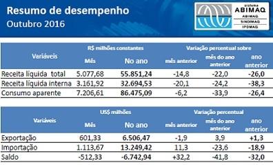 Outros números do balanço da Abimaq ajudam a entender o quadro atual: as exportações, após um bom início do ano, com câmbio mais favorável, estão apenas 1,3% acima do apurado em 2015 (jan-out); no mesmo período, as importações caíram 18,9%, apesar do aumento de 11,3% em outubro na comparação com setembro; o Nuci - Nível de Utilização da Capacidade Instalada caiu para 63,4%, o menor valor da série iniciada em janeiro de 1999; a carteira de pedidos está em 2,5 meses; e o número de empregado é 5,4% menor que o registrado há um ano.