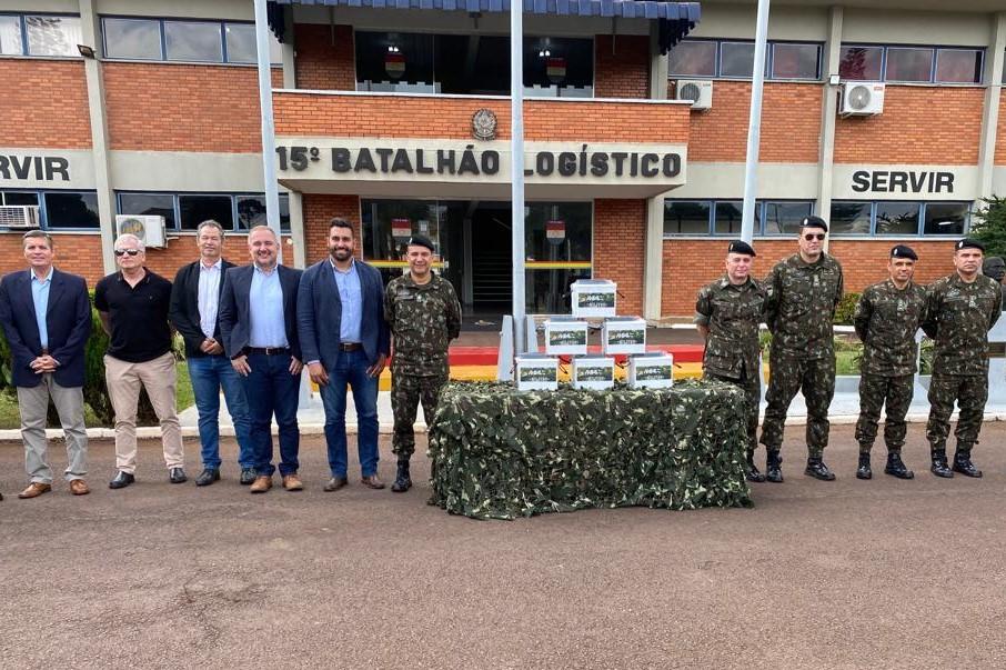 Em uma ação articulada pelo Conselho Temático da Indústria de Materiais de Defesa e Segurança da Fiep (Comdefesa), foram entregues ao Exército Brasileiro, nesta terça-feira (4), 80 unidades de uma bateria especial, desenvolvida pela indústria paranaense ELO Componentes Eletroquímicos, que serão testadas em veículos blindados Guarani. A entrega ocorreu no quartel da 15ª Brigada de Infantaria Mecanizada, em Cascavel.