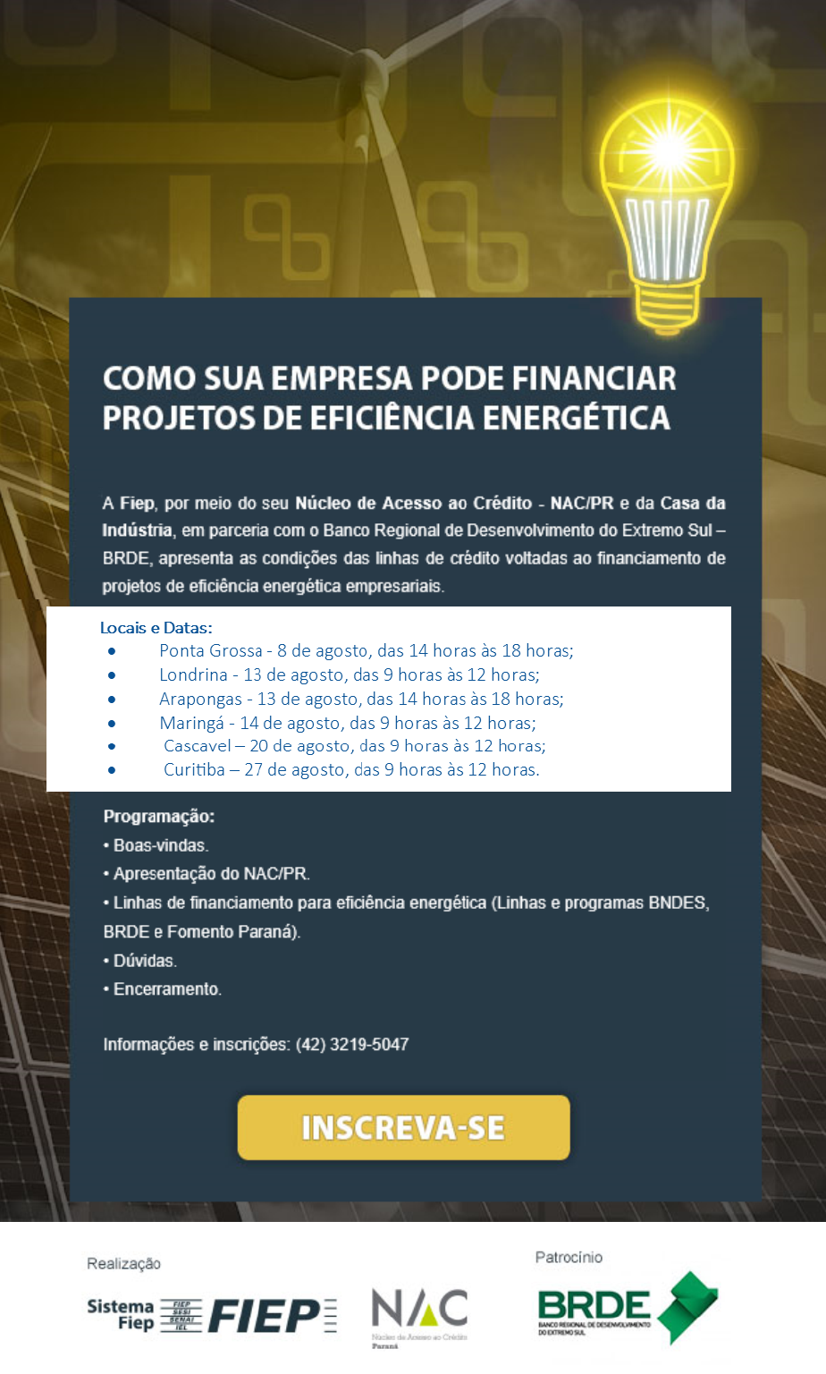 Casa da Indústria, Rua Vicente Machado, 619 – 1º andar – F: (45) 3220-5436