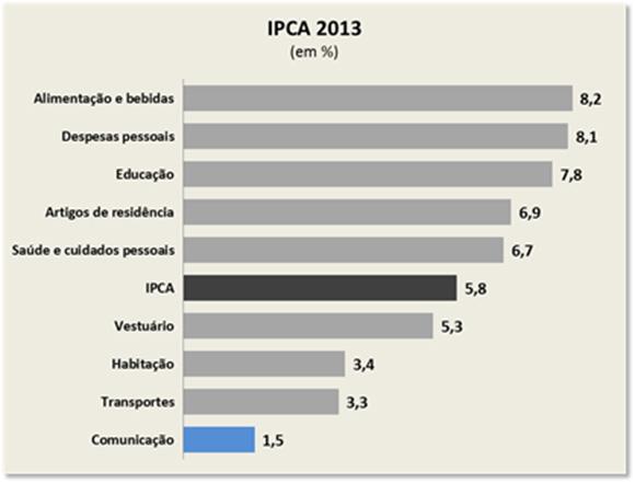 Os preços dos serviços de comunicação, entre eles telefonia, internet e TV por assinatura, estão pesando menos no bolso do consumidor e, em 2013, subiram bem abaixo da inflação. De acordo com o IPCA, índice medido pelo IBGE, o item comunicação foi o que menos pesou na inflação, registrando uma alta de 1,5%, enquanto o índice geral foi de 5,76%.
