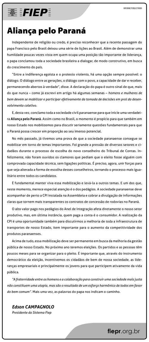 4. Defendemos discuss�es transparentes, mas os sites do Sistema Fiep n�o se disp�em a servir de plataforma de propaganda ou proselitismo, de qualquer natureza. e